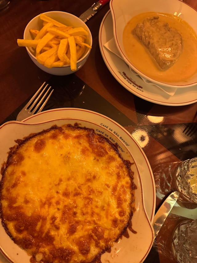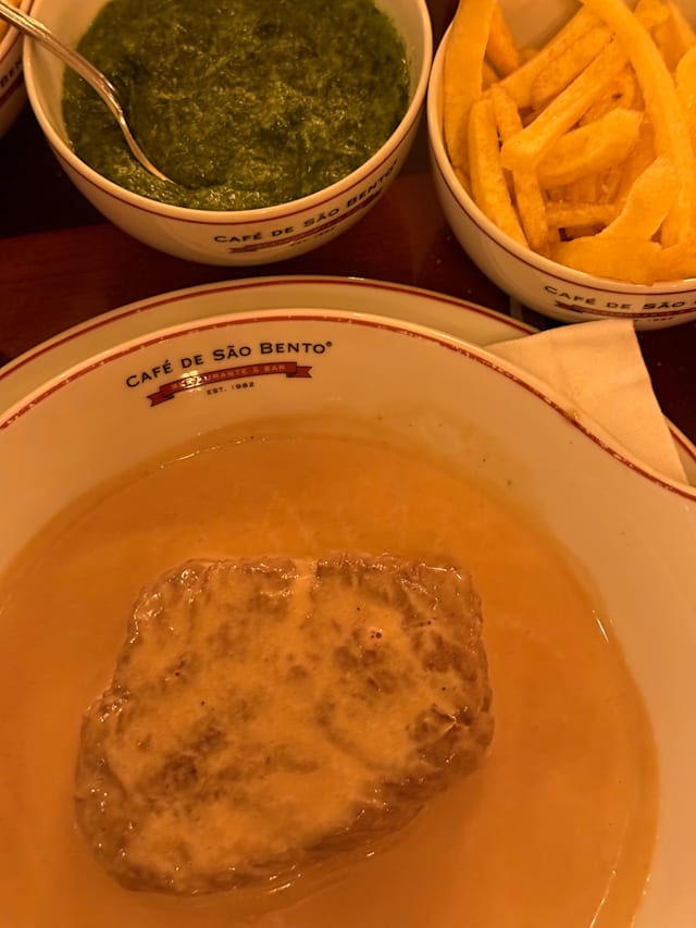 10/10I absolutely loved my experience at Café de São Bento! The place has such a charming vintage wooden décor that makes you feel instantly cozy and comfortable. The atmosphere is calm and warm, and the acoustic design is amazing! it blocks almost all the outside noise, which makes it the perfect spot to relax or have a nice conversation. The staff were incredibly attentive and friendly, always making sure everything was perfect. And the star of the show? The famous steak with the house sauce !!Absolutely delicious! Tender, flavorful, and cooked to perfection. If you’re looking for a place that combines great food, top-notch service, and a welcoming vibe, Café de São Bento is definitely worth a visit.
