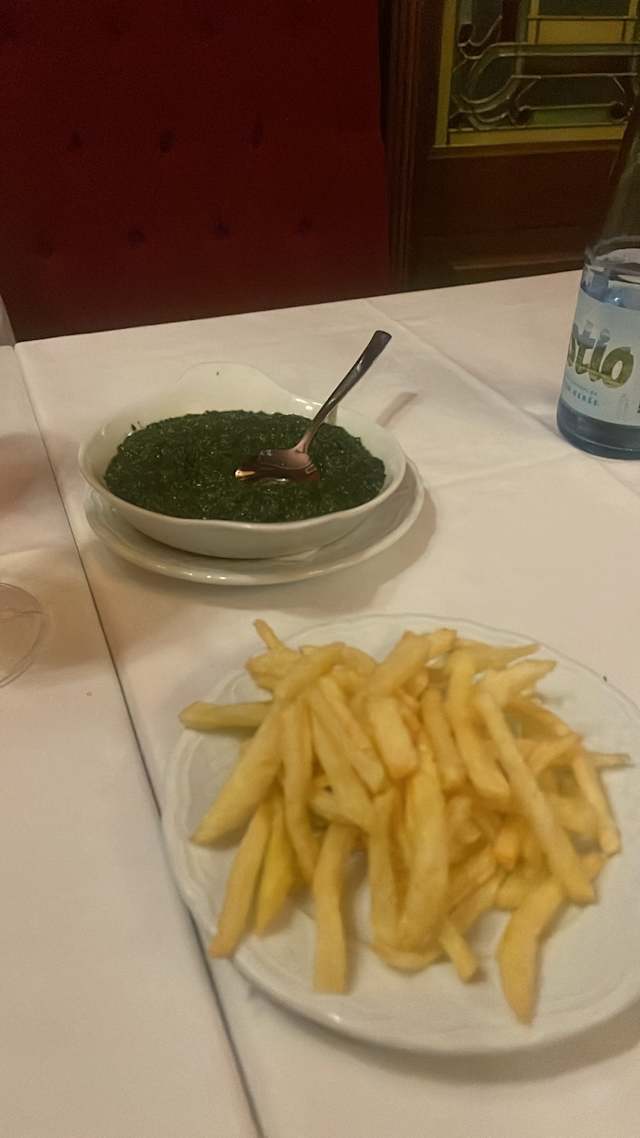 10/10This little out of the way spot is a very old-world gem. You have to ring the bell for entry and when you enter, you’re greeted by dark wood and red velvet. There’s only 10 or so tables. The menu is tiny with a traditional cod dish and steak as mains. My wife had the cod which was great. The steak in a cream sauce was fantastic. Two servings of bread, croquettes, sides of fries and cream spinach with two glasses of Portuguese wine for under 50 euro. The service was excellent. If you want a quiet spot, great food and service, and all for a great price, go here.