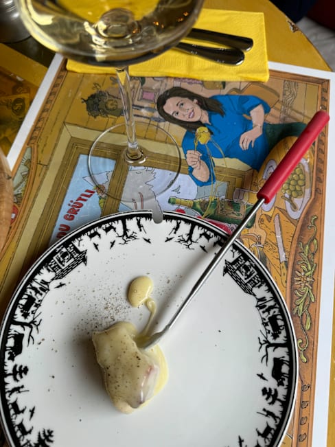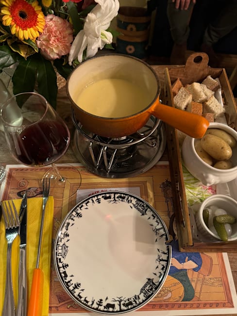 10/10Our group of 6 was lucky enough to have Zack as our waiter. Very personable young man who took great care of us. We all had the combination dinner of charcuterie, followed by delicious cheese fondue, then meringues with Gruyère double cream. Also nice Chasselas wine and finished with limoncello. Altogether delightful and delicious meal. This place is tiny and tucked away, but worth the effort to find. We made a reservation, suggest others do the same.