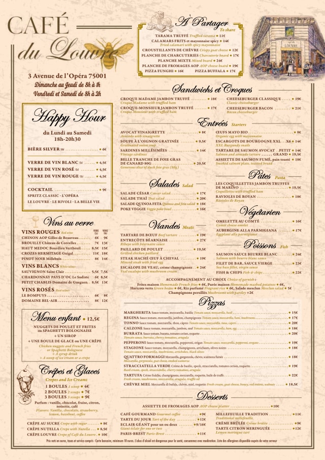 2.5/10Service was extremely poor. Worst service in Paris. Had to call waiter 4x to order food & drinks. She took our order 30 minutes after we sat at our table. Only 1 waiter for inside restaurant is bad management. Very poor management of cafe. Food was not tasty, would not recommend anyone.