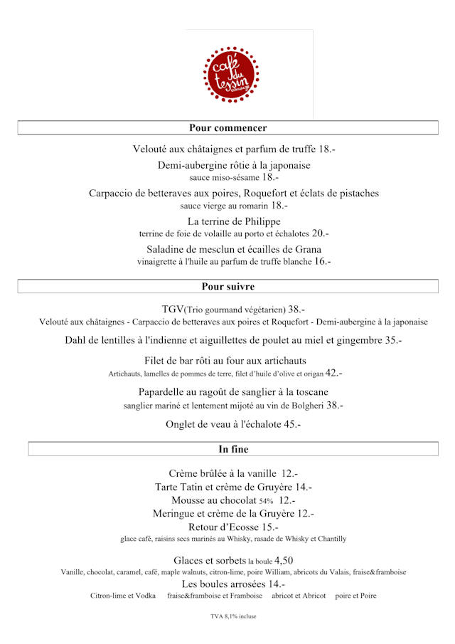 SwissCevicheGame meatSeafood platterTruffleContemporary cuisineCreativeFrom marketGood for a business lunchGood for familiesGood for groupsOutdoor diningTraditionalWith friendsGluten freeLactose intoleranceLocally producedNut allergiesPeanut allergyVegan dishesVegetarian dishesCellarDog-FriendlyWheelchair AccessibleWifi
