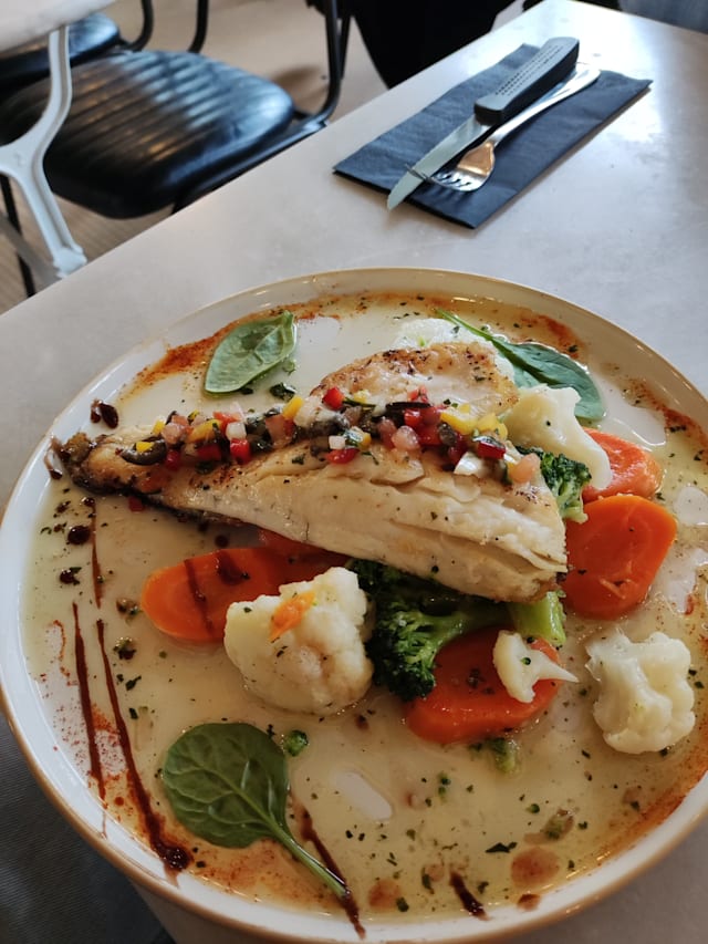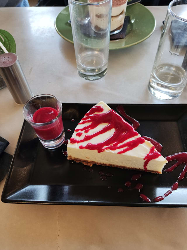 2/10What an odd and not good place. Terrible Caesar salad was inedible - sweet and not sure what but not Caesar. We ordered a well cooked steak that came out almost raw. Tasteless pizza. Service too forever and we had to go get the server any time we needed something. Maybe it’s a nice terrace in summer… Can’t imagine any other reason for the positive reviews.