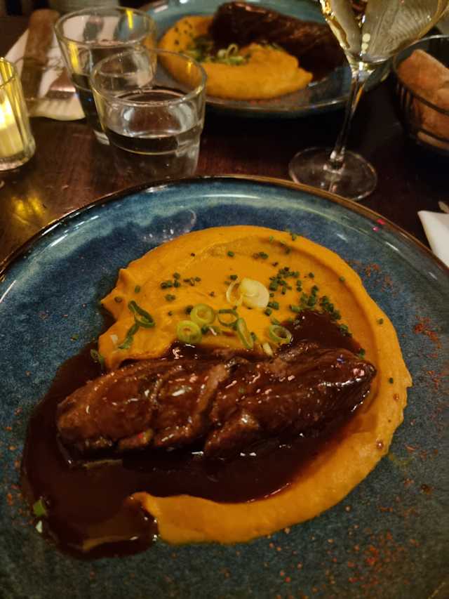 - Le magret de canard, sauce miel cumin & mousseline de carottes