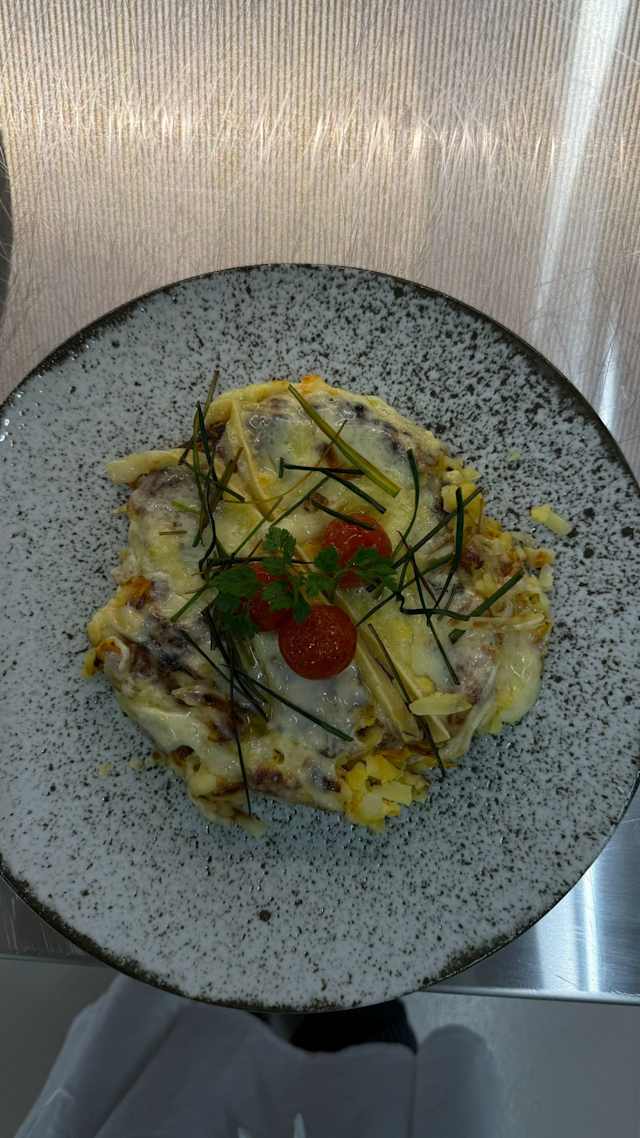 - Wahlweise mit spiegelei oder mit racelettekäse überbacken