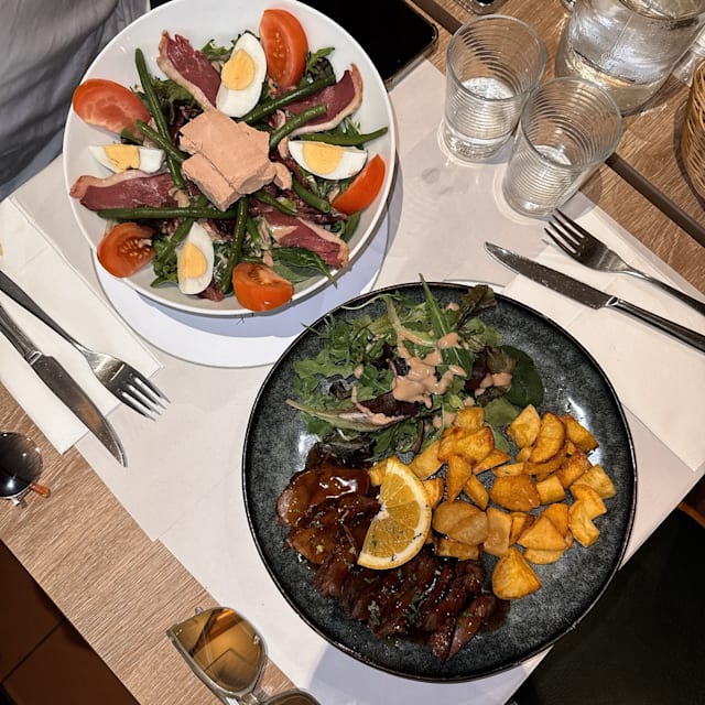 2/10This is my first bad review of a restaurant in Paris. Awful place, I booked a table for two with a 30% discount, I was immediately warned that I needed to order two dishes, we agreed, they brought us a not very tasty Caesar salad in a sauce with old oil, but even worse was the duck, which was poured with a questionable sauce to cover up the staleness of the product, I did not eat it, but I still had to pay. The service is terrible, the staff raised their voice, the restaurant is dirty, I do not recommend this canteen!