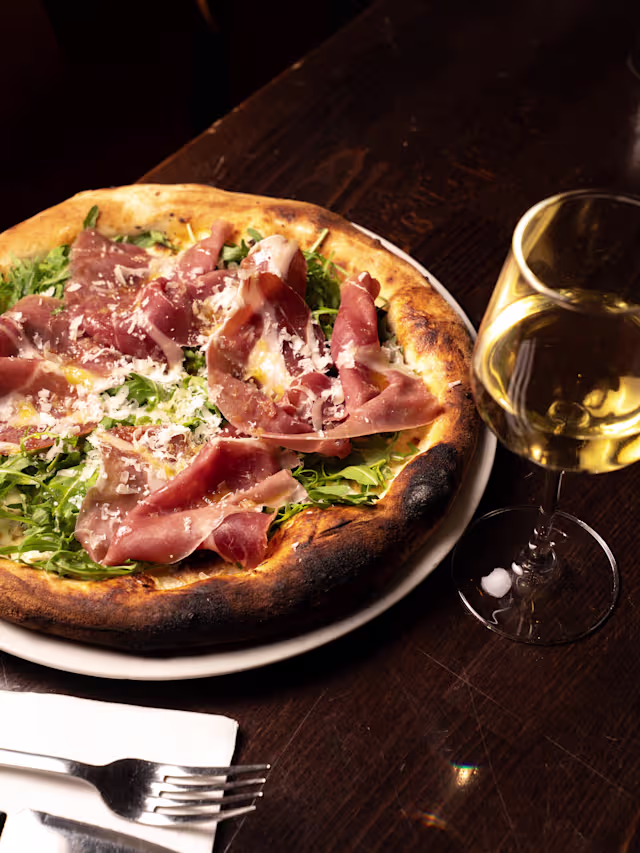 - Crème fraîche/mozzarella fior di latte/funghi porcini/jambon de parme/roquette/parmiggiano reggiano
