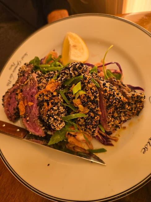5.5/10Extremely disappointed in the food. Lovely atmosphere, service was good but food was sub par. Our steaks were raw. Wish we had gone back to Brasserie Lipp. Still thinking about how good their food was. Would not recommend Cafe Louise and disappointed we went there for our last night in Paris.
