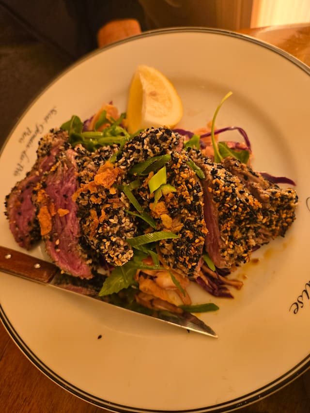 5.5/10The host barely looked at us and reservations made no difference whatsoever. We were sat by the bathroom at the back of the restaurant when there were plenty of other tables available. The French onion soup was mostly bread with few onions. Our waiter was hospitable but never checked on us or the food. The steak was good but the duck was overcooked. Overall the restaurant felt like a tourist trap.