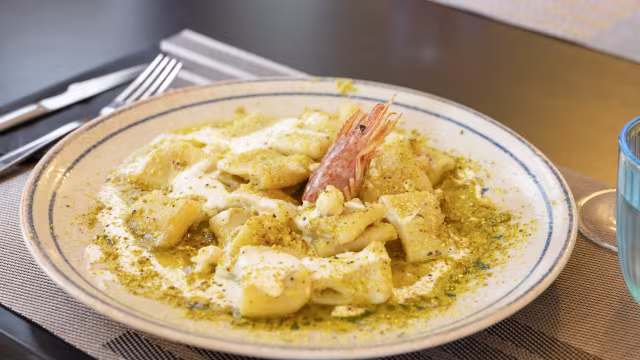 - Pasta con Pesto di pistacchi, Gambero e Burrata