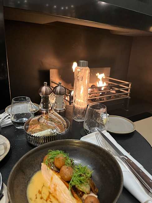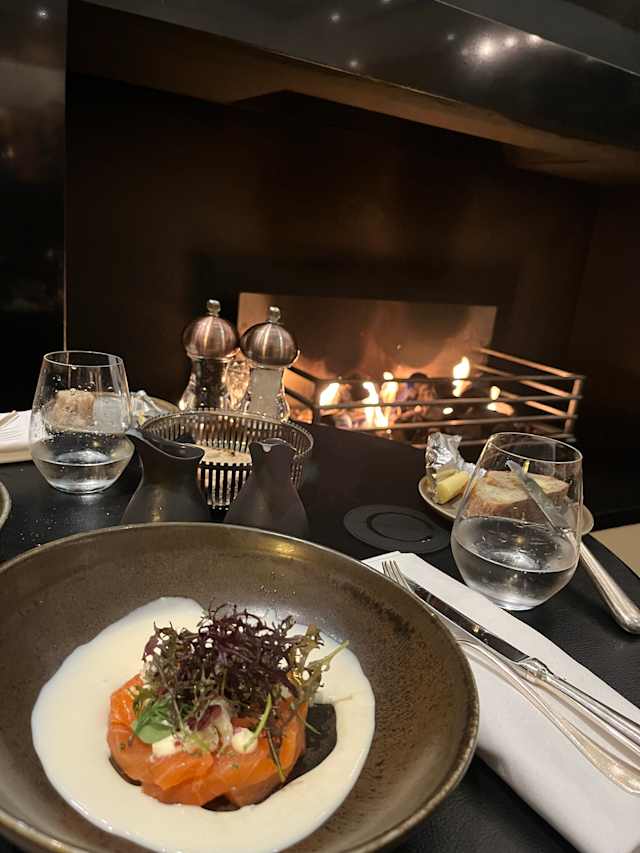 10/10A very kind person took care of us making us comfortable just in front of the fireplace He suggested wines with our dinner that dressed our plates magically The ambiance was really warm and celebrating Christmas day and chef is very creative We had a veloute very tasty and our scallops were delicious Thank you for this lovely dinner