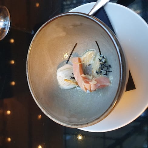 10/10A very kind person took care of us making us comfortable just in front of the fireplace He suggested wines with our dinner that dressed our plates magically The ambiance was really warm and celebrating Christmas day and chef is very creative We had a veloute very tasty and our scallops were delicious Thank you for this lovely dinner