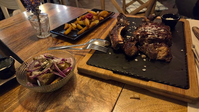 8/10food was good, but not amazing. ordered octopus and steak, octopus was not great, the mash was sticky.