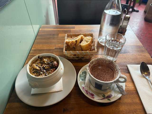 10/10Very savoury soupe d’oignon. Tasty carbonara - light and flavourful. Nice patio experience.
