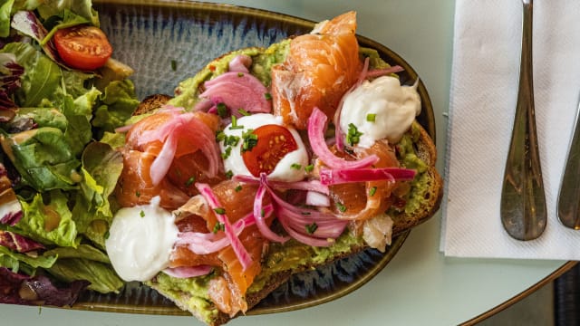 10/10Cafe was perfect! We sat inside but the outside doors were open so the atmosphere was great! Menu has great variety of food and drinks. Service was excellent! Everyone was friendly! Love, loved!