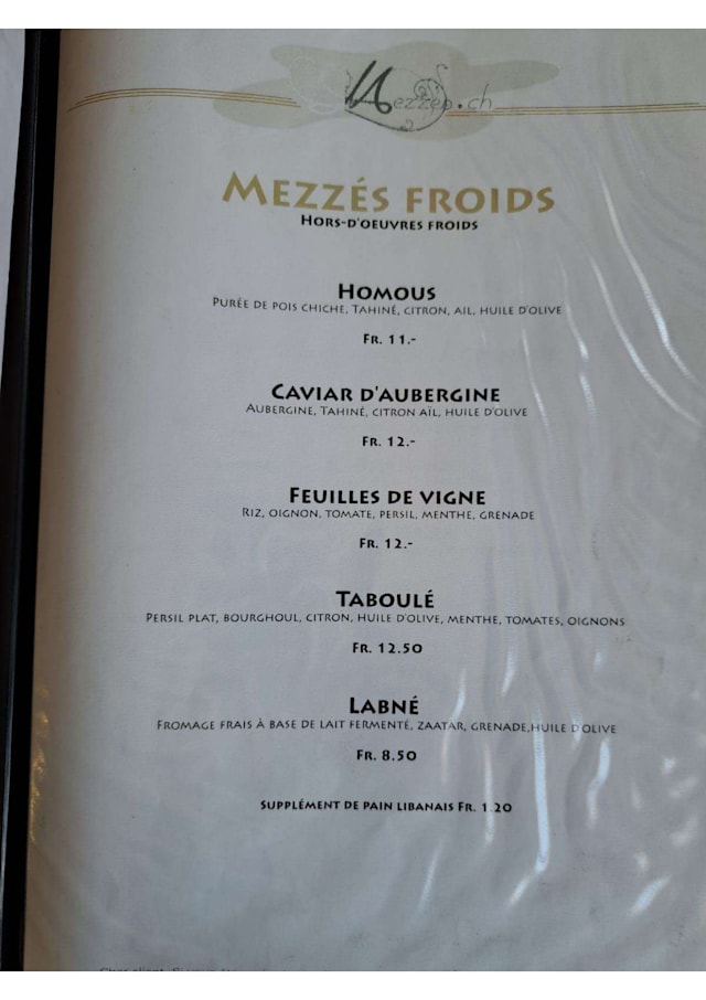 Café Restaurant Mezzés.ch is rated 10/10.TheFork users have rated accordingly in the following categories: