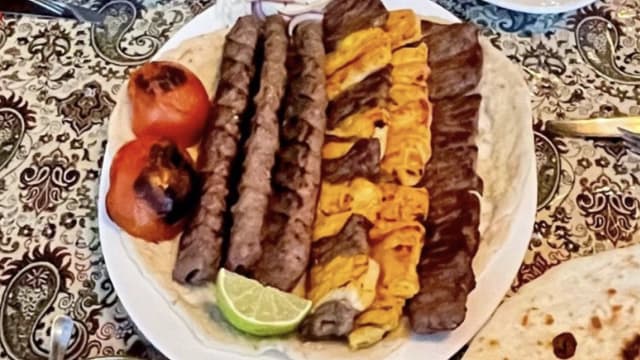 Les brochettes iraniennes (servies avec riz persu safran ou légumes)