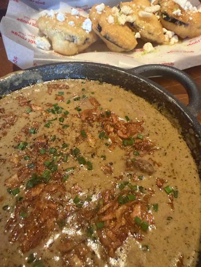 - Berenjena en tempura, queso de cabra y miel