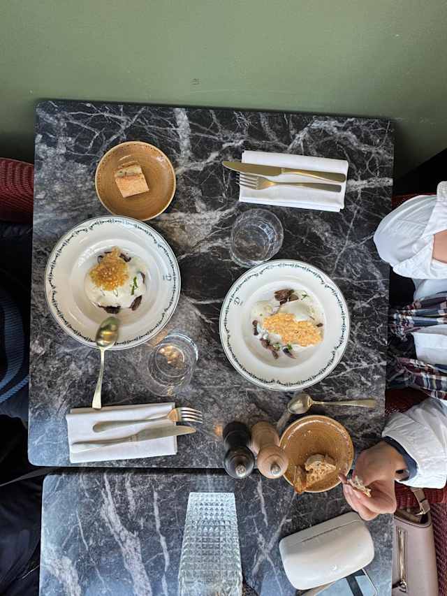 10/10We had the loveliest lunch and a nice corner for us and our dog indoors. The staff were attentive, friendly and polite. The salmon starter was excellent and both our main course of fish and my husband’s kidneys cooked in a Normandy sauce were divine! I wish we had time for dessert and more wine. Such a treat and what a place to discover again!