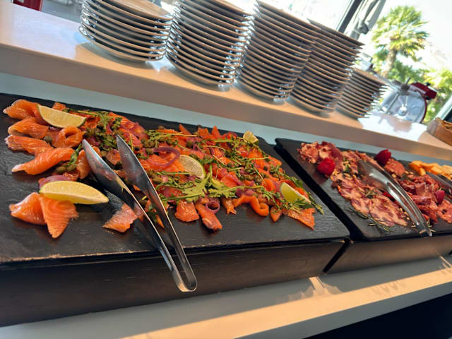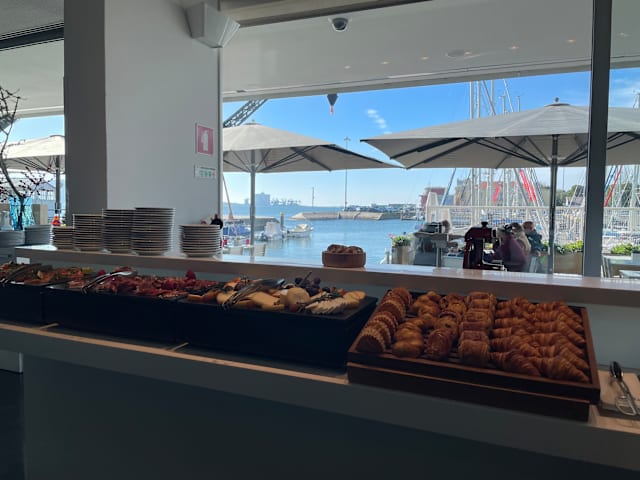9.5/10A good quality buffet for Sunday brunch, and with a good choice. House wine, a juice and soft drinks included. Nice light restaurant with view over the marina and river. Euro 39 per person.