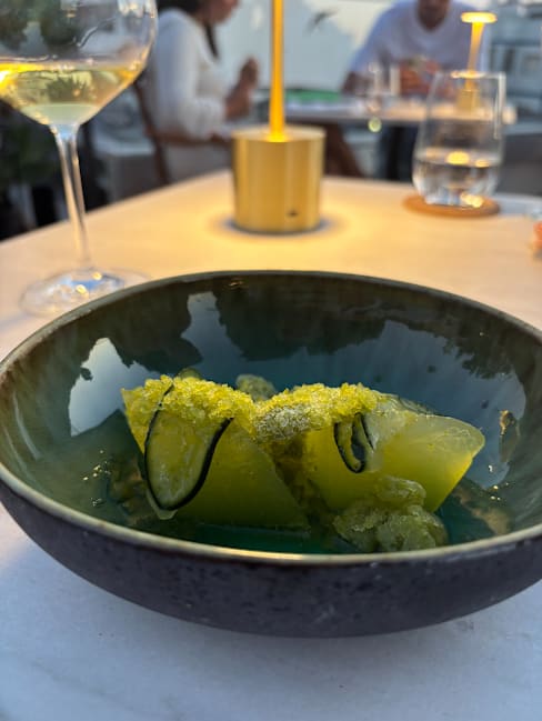 8/10I know this maybe a little odd for most people, but coming from a classically trained chef, fine dining is not my favorite type of food or dining experience, so this is not the restaurant’s fault! I am all about the flavor of food! I don’t care as much about the presentation, how many ingredients are in it or what the latest technique was used to prepare the food. The ambience and service are important, but the taste of the food is most important to me. That being said…. The ambience was amazing! I sat on the rooftop surrounded by trees, flowers and a beautiful sunset. The service was impeccable! The food was beautiful and had many ingredients, but just wasn’t my cup of tea. The specific dishes were not something I would normally order, but I am totally okay with stepping out of my comfort zone. Out of 6 courses, I only really liked the flavor of one. Again, this may be your thing, but sometimes I feel like simple, authentic food is under appreciated.