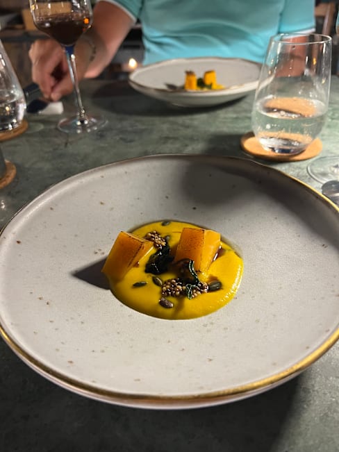 9/10+5The food was outstanding! Small tasting plates, with tasty and interesting flavours. The kefir butter was really unusual and very flavourful, not tried it in butter form before. A standout for us was the squash Penang, so delicious! A couple of small negatives - the service was slow to start with receiving drinks & menus … we arrived at a similar time to others, but service was excellent after this & for my personal taste I would have preferred the tuna sliced a little thinner and the skin taken off (a texture thing) but the plate was very tasty Overall I would definitely recommend!
