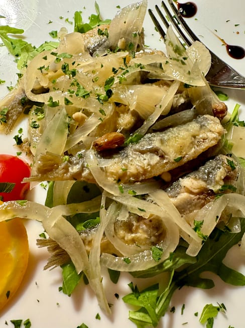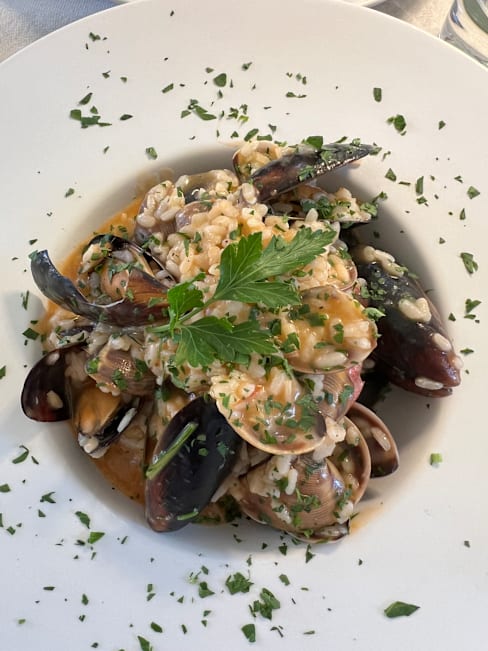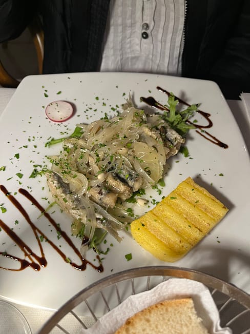 7.5/10We wanted to have the wine of the house, but the waiter informed us that they ran out so he can only give other wines for a more expensive price. The next disappointment was the food. The seppie al Nero tasted like a super salty tomato sauce, and the amount of polenta given as a side dish was very little. My partner had the squid ink risotto which I also tasted, it mainly tasted like parmesan cheese. The restaurant has a nice vibe but food wise I was not convinced. There are better places to try.