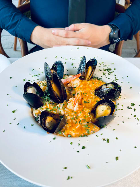 3.5/10Each dish was more of a let down than the last. The portion of calamari was extraordinarily small, the preparation was underwhelming, and the price was astronomical. The lasagne bolognese was far from that. The pasta was well overdone and the dish lacked flavor overall. The carbonara had a chemical flavor and was practically inedible. The amount consumed was only a reflection of the level of hunger. The sea bass was the most edible thing we ordered and it was mushy and flavorless. This seems to be their forte, overcooking food. We’ve had better fish at franchises in the US. A 12% service charge is automatically added to the bill. To add insult to this unpleasant experience the server refused to acknowledge that a woman was paying the bill, despite having been the one to ask for it, he gave it to my husband and only spoke to him, then even after I handed the card to pay, he asked my husband to sign. We chose this restaurant based on TripAdvisor reviews and were entirely disappointed.