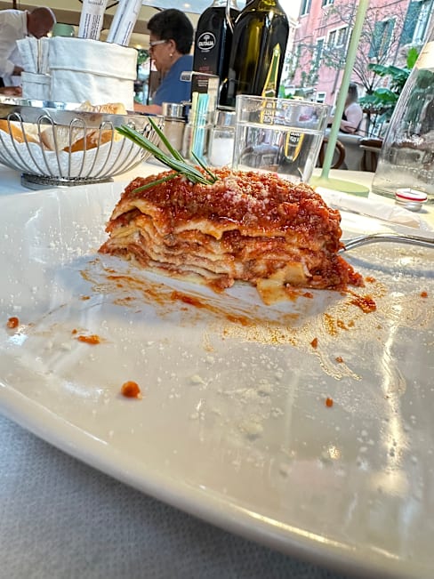 8/10Food was very good. My wife had the steak with green pepper sauce, which she said was delicious. I had the lasagne al forne, which was solid. Nice little restaurant in a little palazzo off of a canal. Service was good.