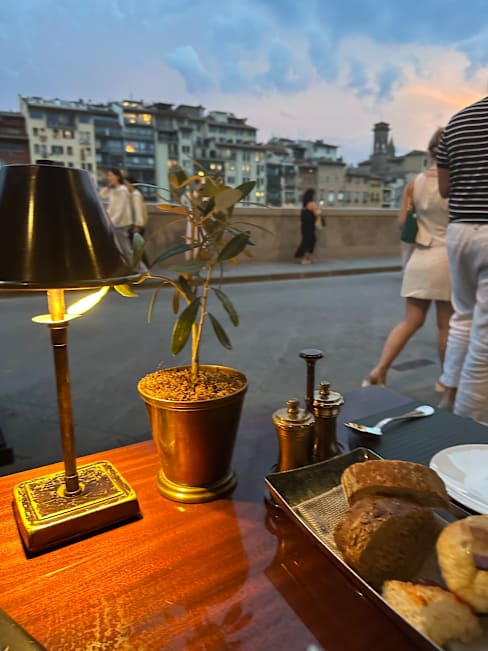 10/10We enjoy a nice lunch in family at this very cosy place with a view of the Ponte Vecchio. The food was excellent and the personnal very professional and kind. They even surprise me with a dessert for my birthday. A small jewel few steps of the loud crowd. We recommend it.