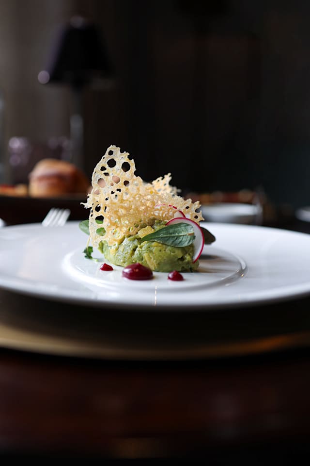 Aioli al peperoncino, chips di lino e olio al prezzemolo