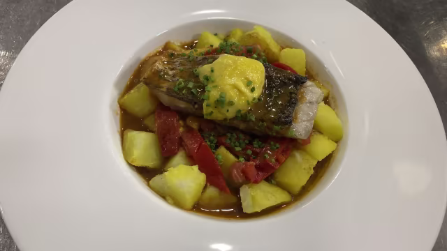 - Filet de daurade , écrasé de pomme de terre jus de crustacés