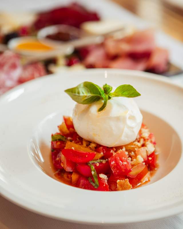 - La nostra caprese ai tre pomodori, olio al basilico, burrata e pane croccante