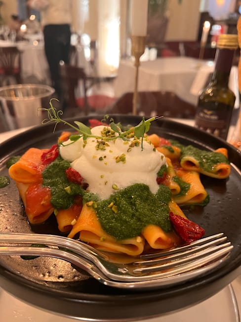 6.5/10Caffè Tommaseo is an old Trieste institution, going back to Hapsburg times, so we were keen to visit it. Unfortunately, the experience was a little disappointing. To start with, my wife tried to select first one and then another menu item only to be told that they were each only served for two people. That’s fair enough, so she chose something else (i.e. her third choice) finally with the waiter’s approval. When it came, it was absolutely tiny – for a supposed main course! I wanted to order her something else, but she didn’t want to make a fuss. My beef main course, which I had ordered done medium, came rare to the point of being ‘blue’! They took it back and cooked it a bit more, but it was still quite rare when it returned. Like my wife, I didn’t want to make a fuss, so I just ate it. At the end of the meal, my wife ordered a glass of port. When it arrived, it contained a lot of sediment – from the bottom of a bottle that had not been decanted. To be fair, the waiter accepted that the port contained an undue amount of sediment and did not charge us for it. I had really wanted to like Caffè Tommaseo for reasons of historical sentimentality. It’s certainly well-appointed inside and has the look of a classy place, but there were too many disappointments with the meal for me to be able to give it a higher rating.
