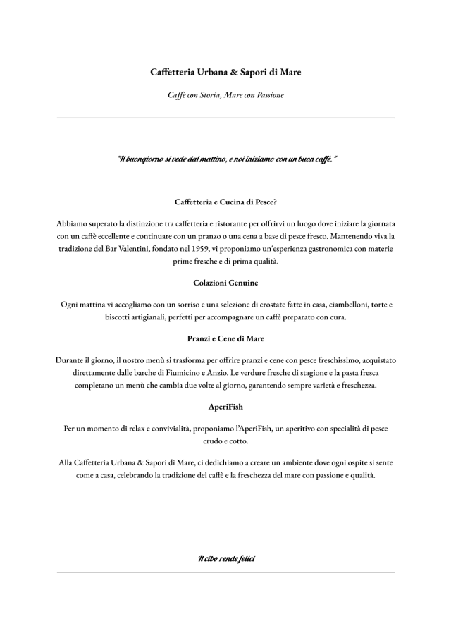 ItalianMeat CuisineMediterraneanSeafoodTraditional cuisineEuropeanContemporary cuisineCreativeFine DiningFrom marketLunchTraditionalTrendyWith friendsOrganic foodVegetarian dishesChildren's menuDog-FriendlyWheelchair AccessibleWifi
