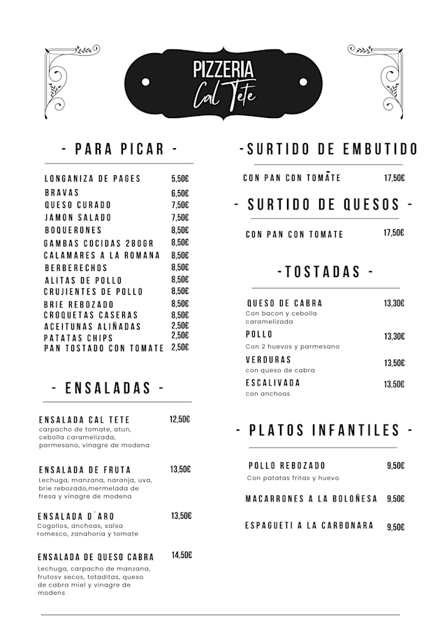 Cal tete mes que una pizzeria. Cocina casera en un concepto más moderno sin renunciar a lo tradicional. Ofrecemos una buena experiencia con nuestras, tapas, ensaladas, tostadas, pizzas y una buenisimas creps.