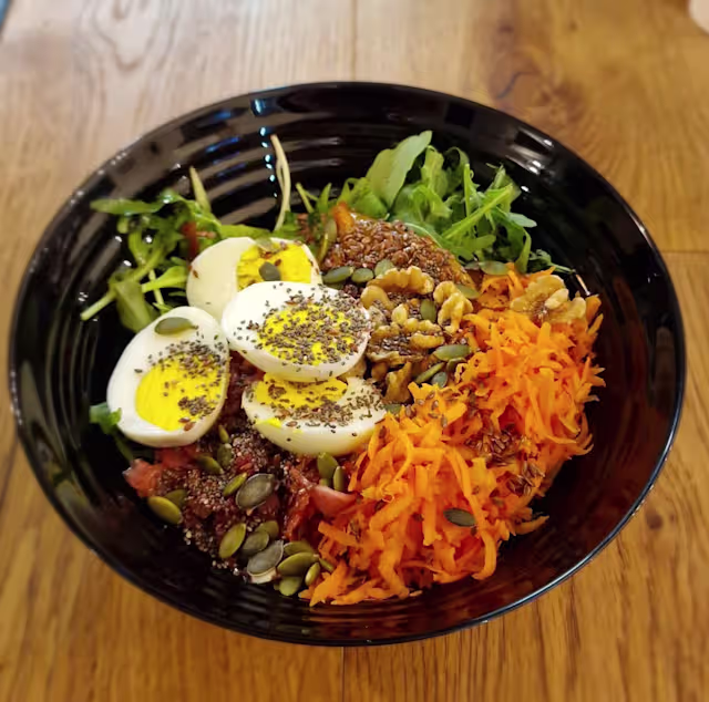 - Riso venere, avocado, edamame, pomodorini, semi misti, carote julienne e salsa allo yogurt. Equilibrata e “healthy”, ideale per chi cerca leggerezza.