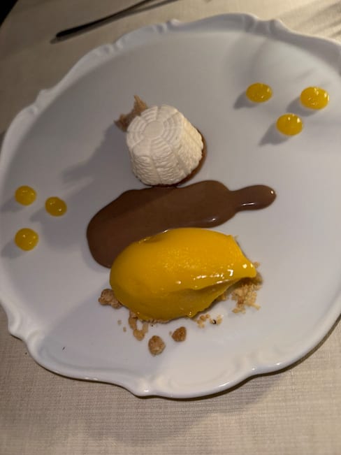 10/10+5The food and service at Cala Luna were exceptional. We have had the opportunity to dine at a few Michelin star restaurants. This experience is on par or better than a few of them. One highlight for us was the lamb. It had a delicious caramelized skin and was perfectly tender. Another highlight was the symmetry of the meal. The amuse bouche and dessert finale echoed each other. Finally, the chef readily accepted the challenge that I am pregnant and modified each meal ever so slightly while maintaining my husband’s. We really appreciated these small changes and both had an excellent meal. Finally, the service was impeccable and what you would expect from a Michelin star restaurant.