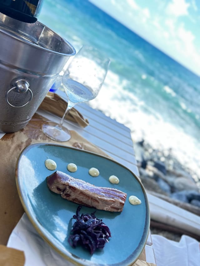 9.5/10a stunning location on a private beach, romantic lighting and relaxed atmosphere. Excellent seafood and well presented. Gabriele and the team did a magnificent job, will definitely return.