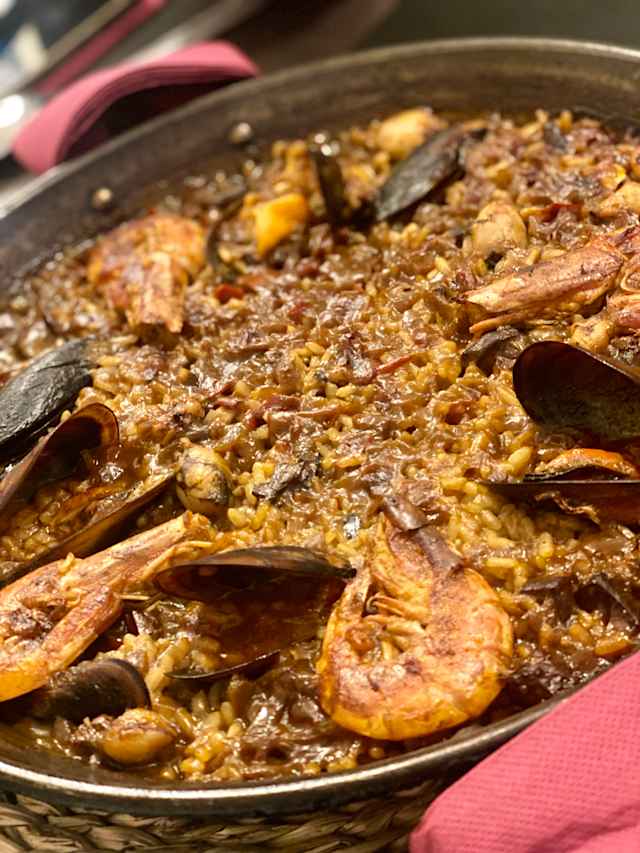 6.5/10Tapas were predictable. Seafood paella was overcooked, nearly burnt.