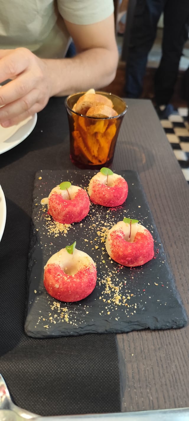10/10The food was absolutely amazing. I can honestly say it’s the best food I’ve had whilst I’ve been in Barcelona. I had the Donut de Rabo de Toro which was absolutely delicious. Soft beef surrounding in a thin bread like coating looking exactly like a doughnut with a pot of mushroom sauce that completed it perfectly. I also had the Huevos Poché Estrellados en Nido de Patatas con Jamón Ibérico, which was a large bowl with poached eggs, with fries (similar to fries but much nicer) then jam on ham and I think a sauce made from eggs. Again absolutely delicious and a very generous portion. Would definitely recommend eating here.