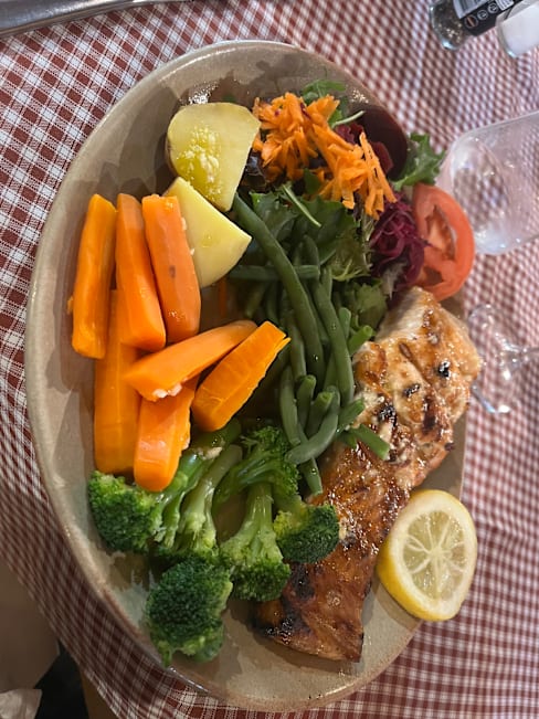 9/10We had lamb chops + salmon, both were delicious and plentiful. The chocolate pie to finish is always excellent. Would highly recommend Calhou.