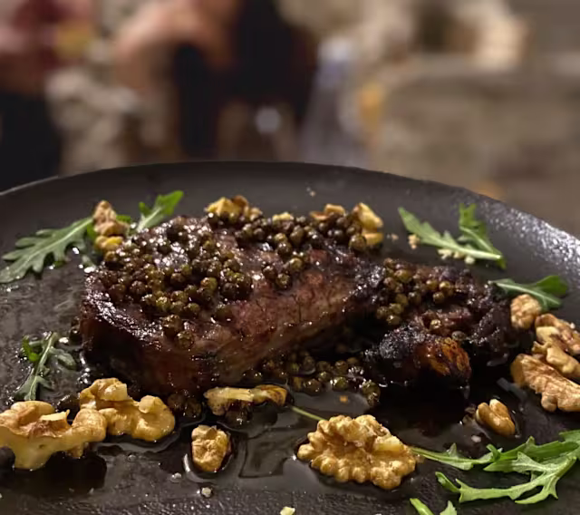 - Filetto di manzo con salsa al pepe verde.