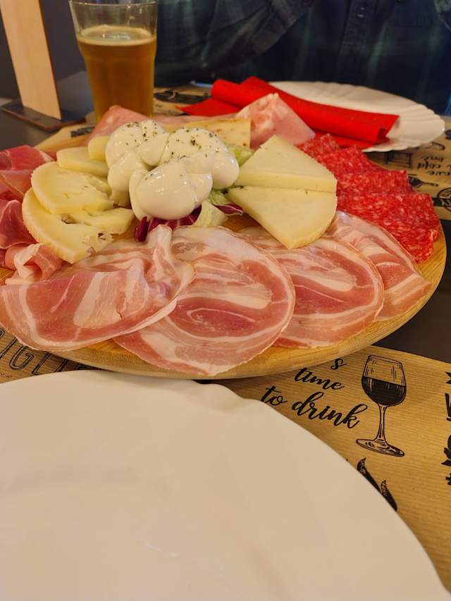 - Capocollo di Martina Franca, stracciatella, pomodorini, granella di pistacchio, rucola