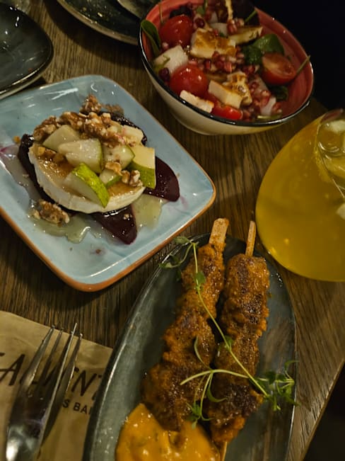 7/10Really expensive considering the quantity for each serving, yet not the tastiest. The ambiance is nice and lively, but if you know tapas, you probably should go for another restaurant. Also I don’t recommend the shrimps that had a rubbery texture. The goat cheese and honey croquettes were quite good however.