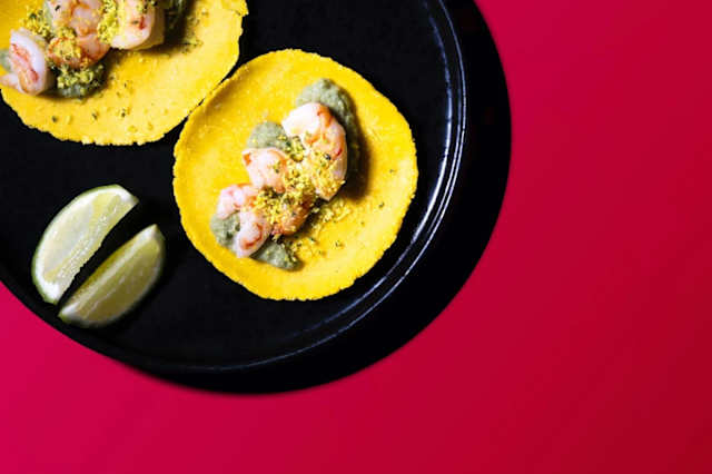 - 2 Tortillas di mais, pulled pork, mole poblano, cipolle fritte croccanti
