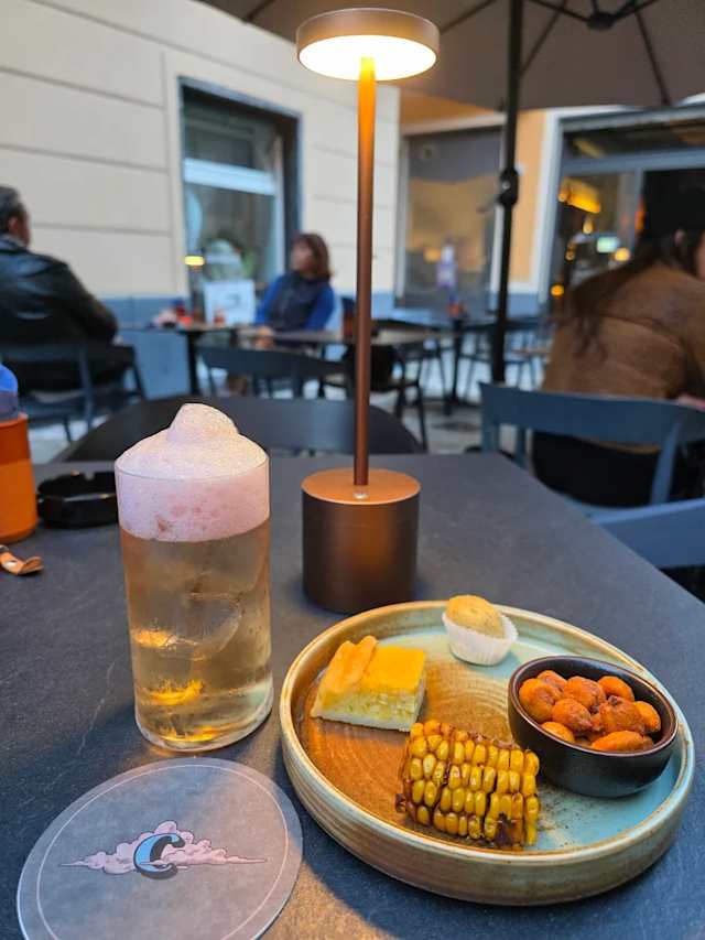 - Tequila reposado, mezcal, liquore al mais, gomma arabica, bitter al cioccolato azteco