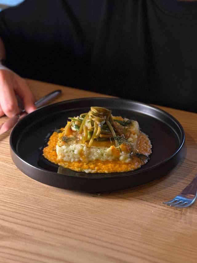 - Baccala’mantecato, crema di carote al timo, puntarelle marinate