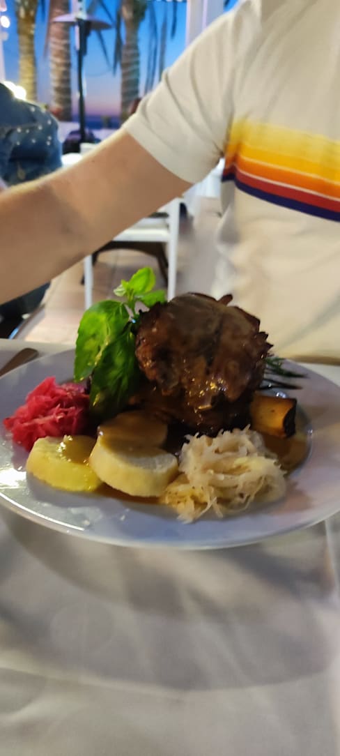 10/10Great little find (although it was located further up the hill than Fork mapping suggested). Great views towards Adeje. Staff were great and food lovely. We shared a starter and initially order 3 mains to share (Aubagine bake/Pork knuckle/stuffed peppers) the waiter suggested 2 would suffice so we dropped the peppers and he was correct. The service was great/staff very nice. Live singer/acoustic guitar playing and An exotic dancer also performed (she obviously doing several restaurants in the area) making the evening memorable. Would recommend and definitely return ourselves. 👍