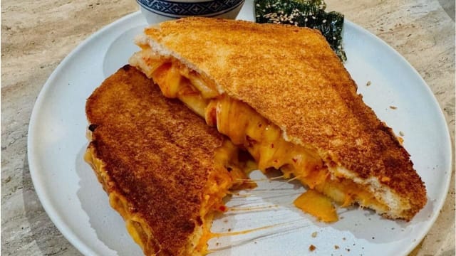 Kimchi, cheddar, mozzarella, mayo, gochujang, nori