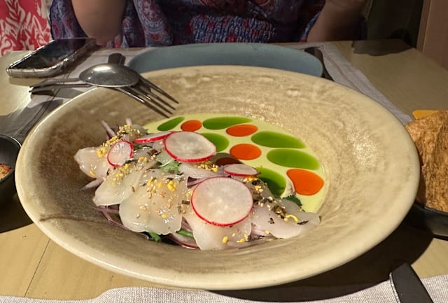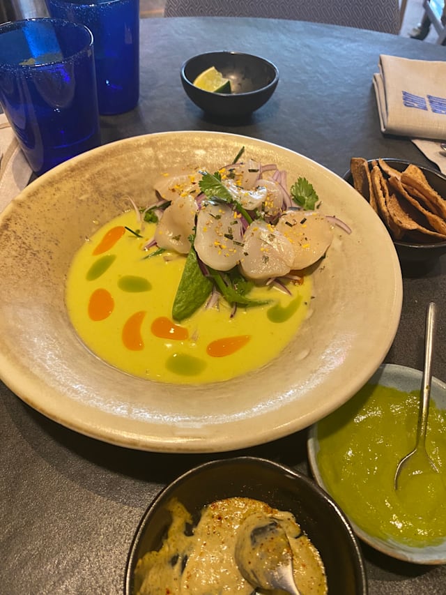 Ceviche verde de vieiras con emulsión de chile jalapeño